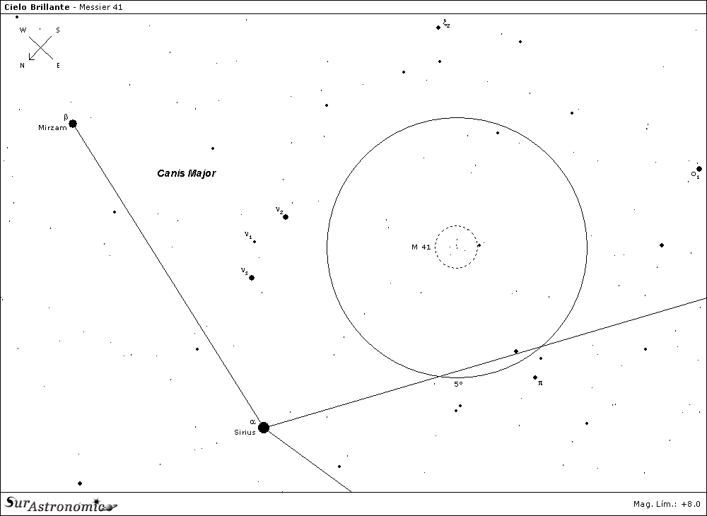 El cúmulo es detectable a simple vista desde cielos oscuros como un manchón blanquecino y algo difuso. Para localizarlo con binoculares, partiremos desde Sirius hacia el sur, teniendo como referencia a Mirzam (β CMa) la cual forma un triángulo casi rectángulo con M 41 y Sirius. Dentro del cúmulo notaremos una destacada estrella de tinte rojizo: se trata de SAO 172290 (HD 49091, HIP 32406), de magnitud 6.9, espectro K3III e índice de color B-V de +1.5.