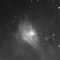 Desde esta difícil nebulosa oscura nos desplazamos hacia el este, hasta IC 435. Se trata de la pequeña nebulosa filamentosa de reflexión, como las de las Pléyades, que rodea a la estrella azulada y binaria, de mag. 8,3, HD 38087. Tiene un tamaño aparente de 6’x4’ y un diámetro real de 2 años luz.