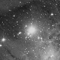 La estrella se halla a 1500 años luz y, la parte brillante de la nebulosa tiene un diámetro de 7 años luz. Al estudiarla con un reflector de 8" y 100x, notaremos el tenue halo nebular redondeado, como de 5’ en diámetro, con la brillante estrella en medio, realmente muy interesante. La nebulosidad mejora con el uso de la visión lateral ó periférica.