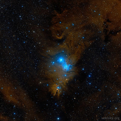 Luego de este pequeño cúmulo abierto, vamos hasta IC 448, a 0,8º al oeste-sudoeste de NGC 2254. Se trata de una bonita nebulosa de reflexión de 15’x10’, que envuelve a la brillante estrella blanca, visualmente blanquecina-amarillenta, de mag. 4,5, SAO 114034 ó HD 46300. Fue descubierta, sobre placas fotográficas del año 1891, por el astrónomo alemán, gran descubridor de asteroides, Maximilian Franz Josef Cornelius Wolf.