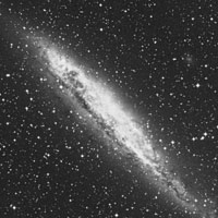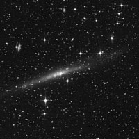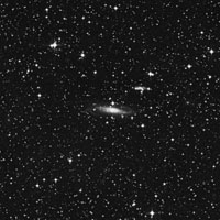 Al explorarla con un telescopio de 10" se aprecia como un fino rayón de tenue luz, como de 4,5’x0,8’, orientada de sudeste a noroeste, terminando con bordes difuminados y, subiendo en brillo hacia su zona central condensada y alargada, de aproximadamente 1’x0,5’, mejorando con el uso de la visión lateral, con una estrella de 10ª mag. sobre el borde oeste y otras cinco muy cercanas alrededor, con magnitudes desde la 9ª a la 11ª, logrando un fino contraste.