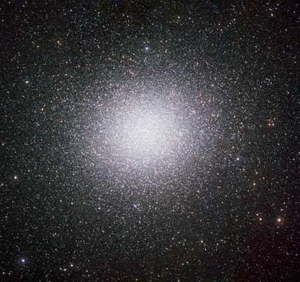 Por supuesto, nuestro periplo comienza en omega Centauri, que según gustos, es unos de los dos cúmulos globulares más hermosos del firmamento, compitiendo con NGC 104 (47 Tucanae) en la constelación del Tucán, ambos del hemisferio sur, pero sin duda es el más espectacular. Con más de cuatro millones de masas solares y una masa total de unas diez veces la de los cúmulos globulares más grandes, es el cúmulo conocido más masivo de nuestra galaxia y, debido a que sus diez millones de estrellas componentes difieren en edad, con varias realmente muy jóvenes y azules, muy posiblemente sea el remanente del núcleo de una galaxia elíptica enana capturada por la Vía Láctea, cuyo halo fue absorbido y su núcleo en parte erosionado por fuerzas de marea. Esta idea, aún muy discutida, también esta sustentada por el reciente descubrimiento de un mediano agujero negro en su centro, de unas 40000 masas solares.