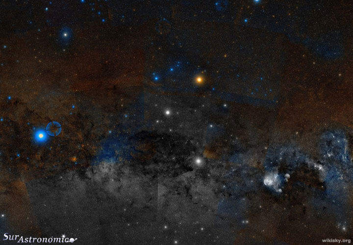 Mientras recorríamos estos cuatro primeros objetivos, todos cúmulos estelares abiertos, fuimos bordeando al Saco de Carbón, por el norte y noroeste, siguiendo con el itinerario, ahora vamos a dedicarnos a su estudio.