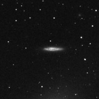 Podemos detectarla en un pequeño refractor de 3", pero para su mejor estudio necesitaremos aperturas mayores de 6", donde la veremos algo tenue, muy alargada y delgada, lenticular, como de 2,8’x0,5’, orientada este-oeste, con su área central más luminosa. En un 10", notaremos un núcleo estelar débil, rodeado de una zona brillante, achatada y descentrada hacia el oeste. Hacia el borde este del halo, baja repentinamente en brillo, delatando una posible zona de absorción. Su tamaño alcanzará los 3,3’x0,8’y, el borde oeste se aprecia muy difuso, integrándose con el campo.