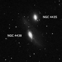 Las galaxias forman un interesante par en interacción gravitacional, que han tenido una posible colisión rasante y corta, rozándose a solo 16000 años luz de distancia entre ellas. Este encuentro sucedió hace unos 100 millones de años y, como resultado, la galaxia más masiva NGC 4438, nos muestra claramente en fotografías su trastornada estructura. En cambio NGC 4435, no aparece tan dañada por el encuentro. De los tirones gravitacionales, además de quedar una muy caótica estructura visible en NGC 4438, se observan, en imágenes de Rayos X logradas por el Telescopio Espacial Chandra, gigantescos filamentos de gas caliente alrededor de ambas galaxias.