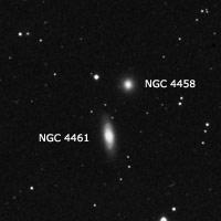 Estudiándolas con un 12" a 200x, NGC 4461 aparecerá más larga, elongada 3:1 e incrementando su brillo hacia el centro de unos 20" en diámetro y, con núcleo casi estelar y; NGC 4458 se verá más oval y, elongada 3:2, norte-sur.