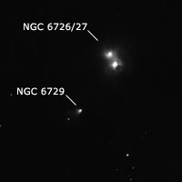 A sólo 5'al sudeste de NGC 6726/27, hallamos nuestro séptimo punto de interés, la nebulosa NGC 6729.