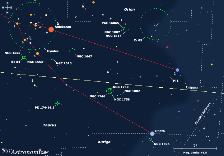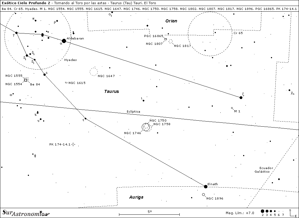 Atravesada por el Cinturón de Gould, la zona elegida para esta segunda entrega de Exótico Cielo Profundo, es la parte de la testuz y las astas del Toro, sobre el Noreste de esta antigua constelación, donde nos esperan hermosos cúmulos estelares, nebulosidades oscuras y brillantes, una difícil nebulosa planetaria y, un par de tenues galaxias.