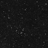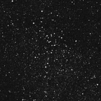Lucirá tenue en un 5", con una estructura irregular y redondeada, con 4 ó 5 estrellas muy juntas y fondo brumoso. En un 8" se destacará del rico campo estelar, comenzando a surgir su interesante forma de cruz ó letra equis, con una decena de estrellas bien identificadas, compacto y, con una bonita doble por el centro. Al estudiarlo con un 11", resolveremos mejor su estructura, donde aparecerán tres sugestivos pares, uno en el centro, de 11ª mag. y separado por 14", otro hacia el Norte, de 9ª y 10ª mag., sep. 15" y, el tercero, hacia el Sur, con mag. 11ª y 12ª, sep. 27". El cúmulo nos mostrará una docena de estrellas a bajos aumentos y unas veinte al subir la potencia, mejorando su aspecto. A ambos lados de la doble central veremos dos estrellas, entre la 9ª y la 12ª mag., alargando el cúmulo con orientación Este-Noreste a Oeste-Sudoeste.