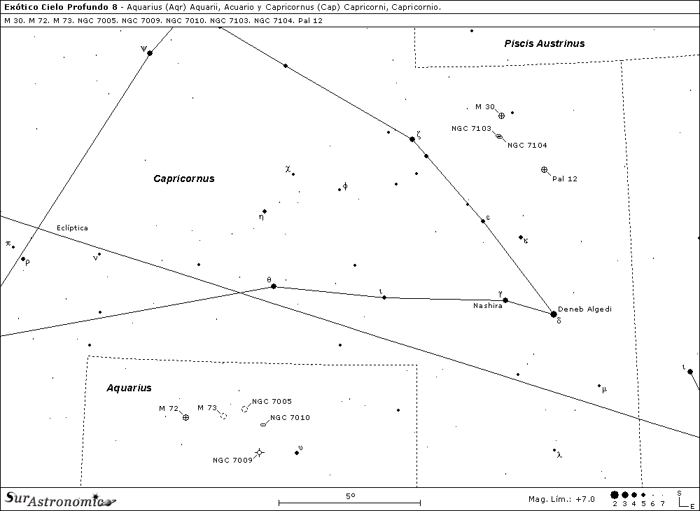 Estas dos antiguas constelaciones zodiacales poseen pocos objetos de cielo profundo destacados, pero veremos que siempre habrá algo por observar. Este recorrido nos llevará sobre varios objetos de cierta dificultad observacional pero, por otro lado tenemos al cúmulo M 30 y a la nebulosa Saturno, que serán las figuras de esta entrega. Por su ubicación, esta zona del firmamento, es bien accesible en ambos hemisferios, siendo un buen motivo para compartir las observaciones con gente de lejanos lugares.