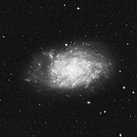 Desde un sitio oscuro puede detectarse, con bastante dificultad, en unos binoculares 7x50. Surge con apariencia cometaria, sobre un campo sin estrellas brillantes, en un telescopio reflector de 5", viéndola con brillo tenue y desigual y, un núcleo estelar. En un 8" se verá amplia y débil, grisácea, oval y oblonga, orientada casi totalmente este-oeste, respondiendo bien al uso de la visión lateral. En un 11" seguirá viéndose grande, como de 6,5’x4’, con un disco alargado 3:2, de bajo brillo superficial y bordes difusos, apenas más brillante del lado norte, ligeramente moteada y, con un pequeño núcleo oval más brillante.