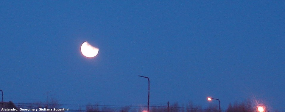 Fotografías de Alejandro, Georgina y Giuliana Squartini del eclipse lunar parcial del 16 de Agosto de 2008, tomadas con cámara digital desde Malargüe, provincia de Mendoza.