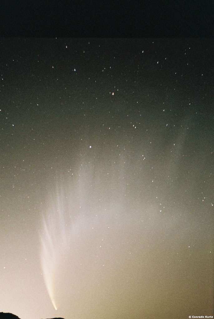 Fotografías del cometa C/2006 P1 McNaught tomadas por Conrado Kurtz desde la provincia de San Luís, Argentina, en el mirador camino a la Punta, Potrero de los Funes, con una cámara Zenit y película Fuji 400 ASA.
