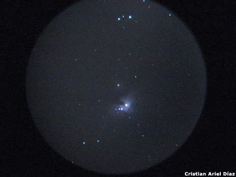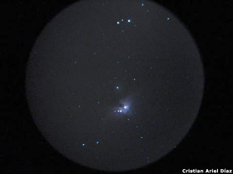 Imágenes de la Nebulosa de Orion (M 42) tomadas utilizando un telescopio reflector newtoniano de 114 mm de apertura F/8 y cámara digital Canon A540 con el método de proyección afocal usando un ocular de 25 mm.