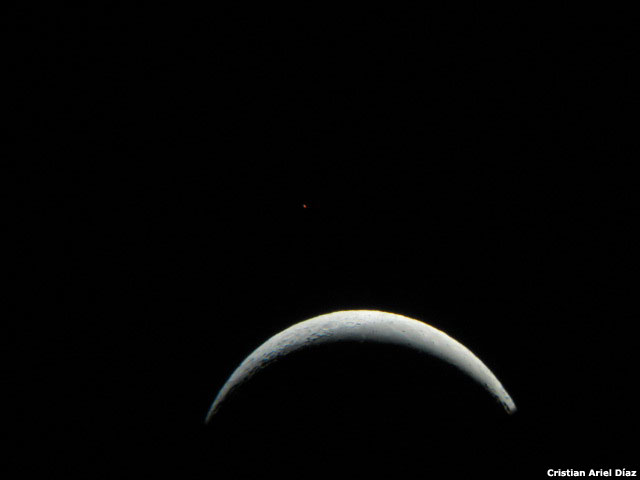 Imágenes de la ocultación entre la Luna y Antares ocurrida el 5 de Enero de 2008. Fotografías tomadas con un telescopio Galileo 114 900 y cámara Canon A540 en proyección afocal.