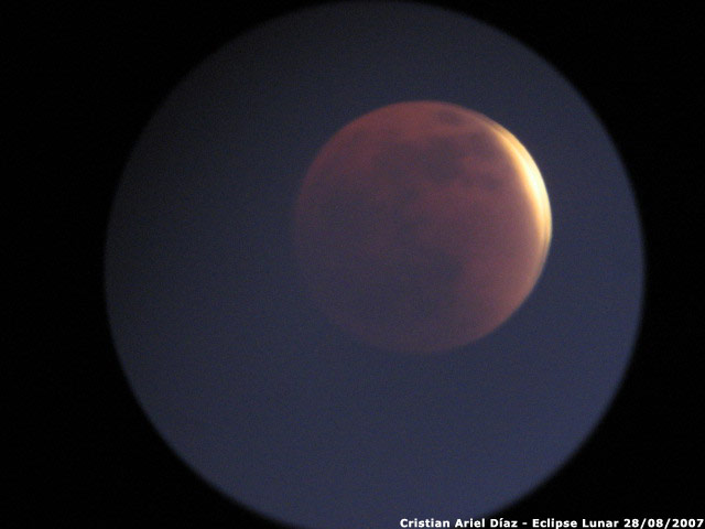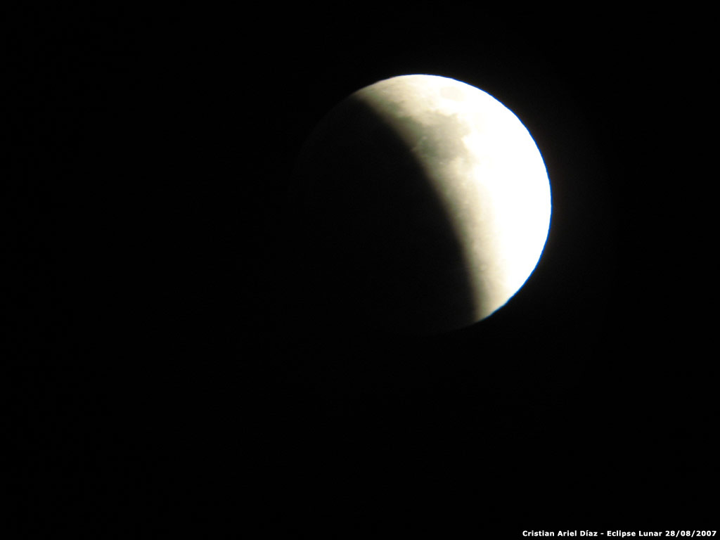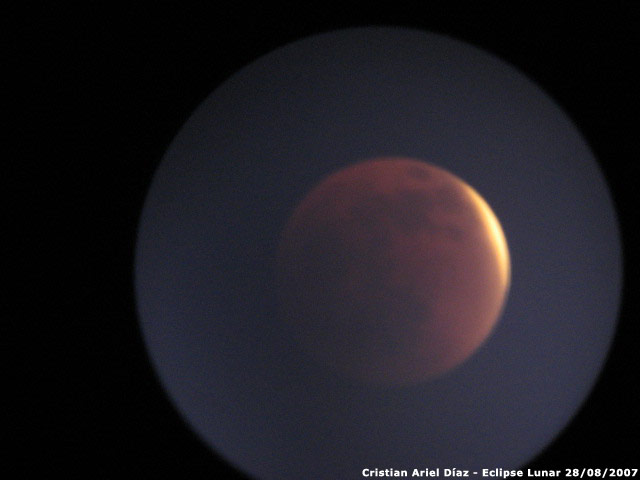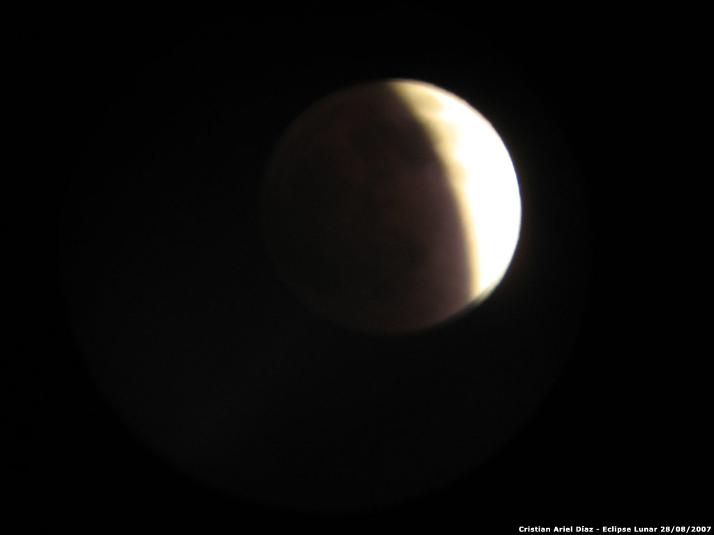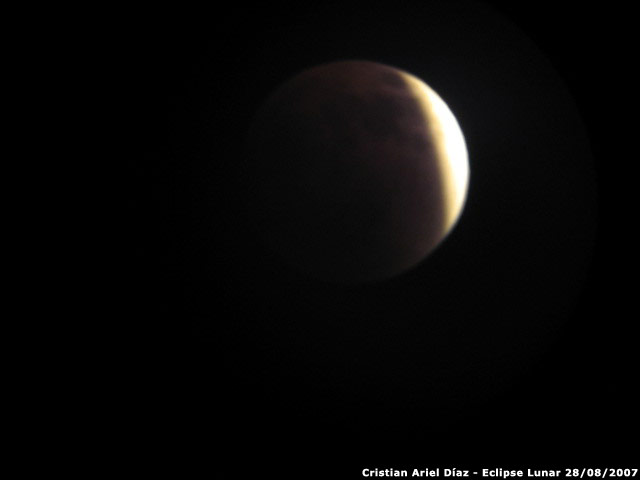 Fotografías de Cristian Ariel Díaz con cámara Canon A540 y telescopio 114 900 EQII, del eclipse lunar del 28 de agosto de 2007.
