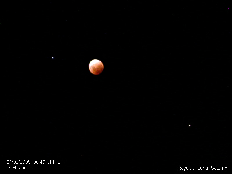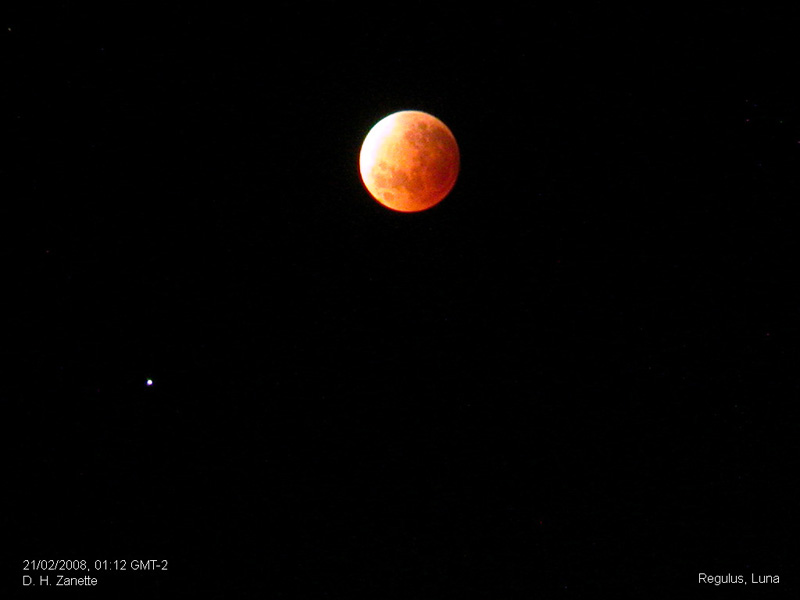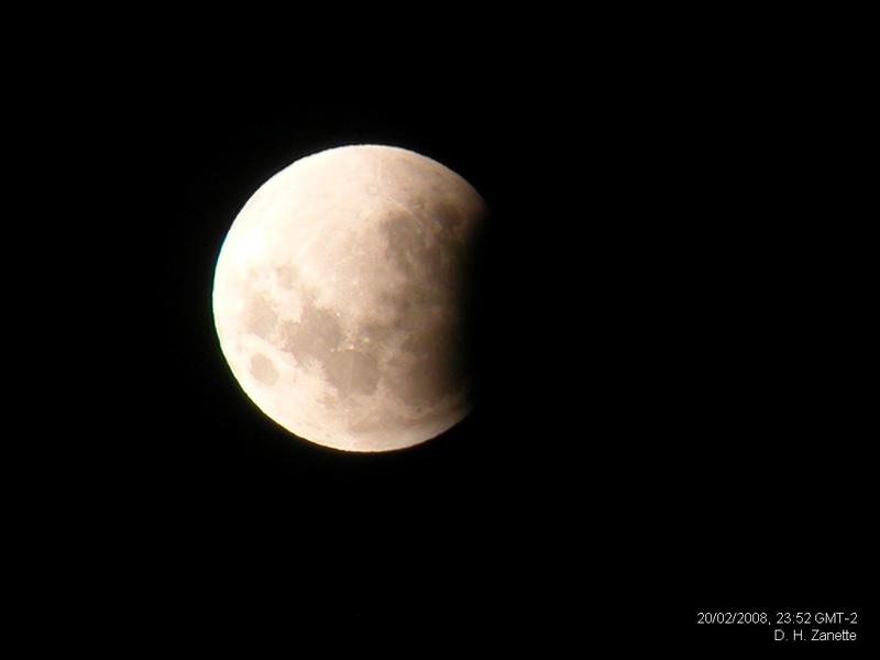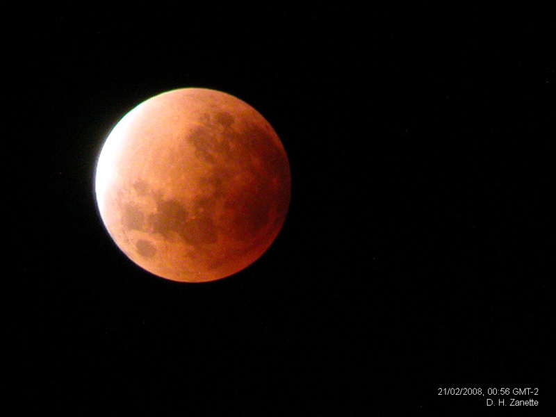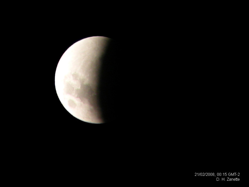 Imágenes del Eclipse Lunar Total del 20-21 de Febrero de 2008 tomadas con una cámara Nikon CoolPix. En las tomas de mayor aumento se utilizó una mira.