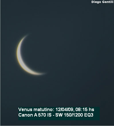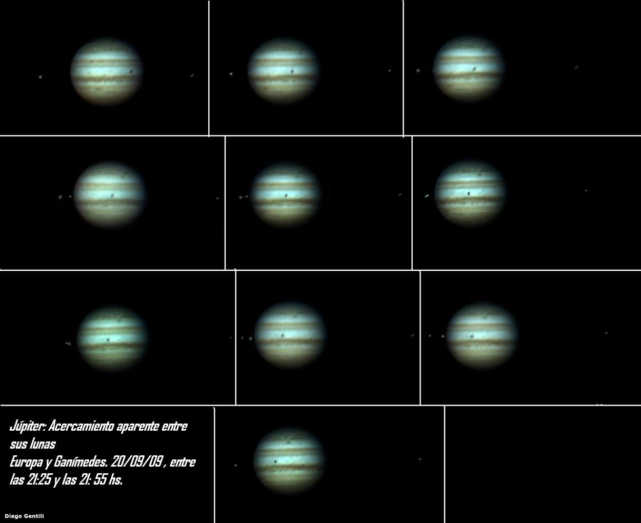 Imágenes de Diego Gentili tomadas con una cámara digital Canon A570 IS utilizando un telescopio refractor SkyWatcher 150/1200 EQ3 y un telescopio reflector Hokenn 114/500 EQ1.