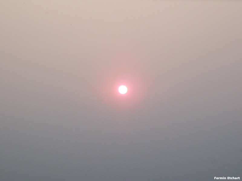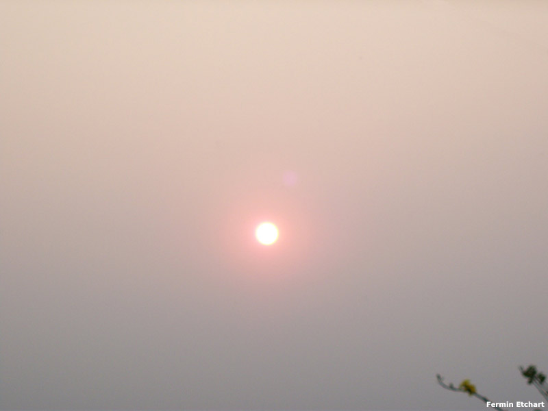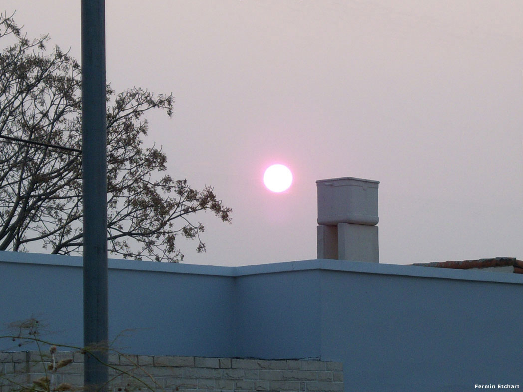Imagen del Sol atardeciendo tomada desde Los Cardales, provincia de Buenos Aires, utilizando una cámara digital Kodak V1003.