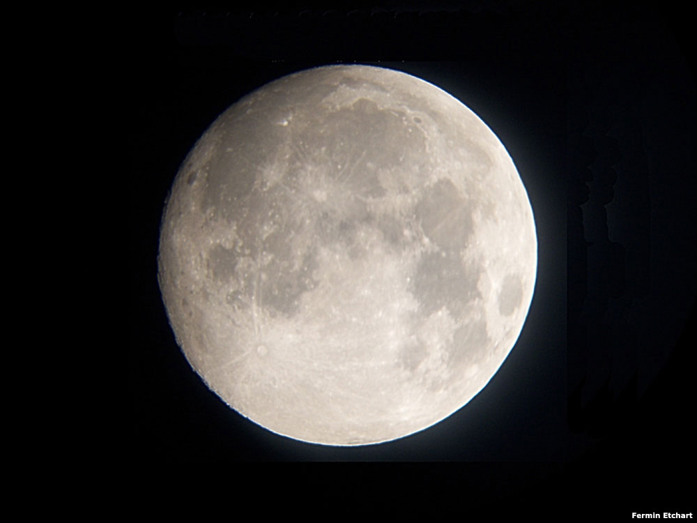 Imagen de la Luna tomada desde Los Cardales, provincia de Buenos Aires, utilizando una cámara digital Kodak V1003 en proyección afocal.
