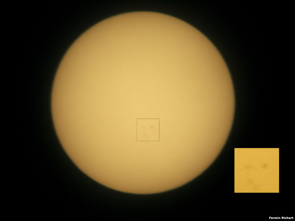 Fotografías del Sol, junto con el grupo de manchas 978, fotografiadas con un telescopio reflector Hokenn 130/650 utilizando una cámara Kodak V1003.