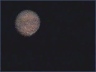 Franco Grimoldi, desde la ciudad de Bahia Blanca, provincia de Buenos Aires, nos envia estas fotografías realizadas un telescopio reflector 180/1200 mm, ocular Plossl de 10 mm, Barlow 2x, y videocámara Sony TRV-66 8 mm, a unos 15x de zoom óptico en proyección afocal. Tomas realizazdas el 10/09/2003 03:30 UT.