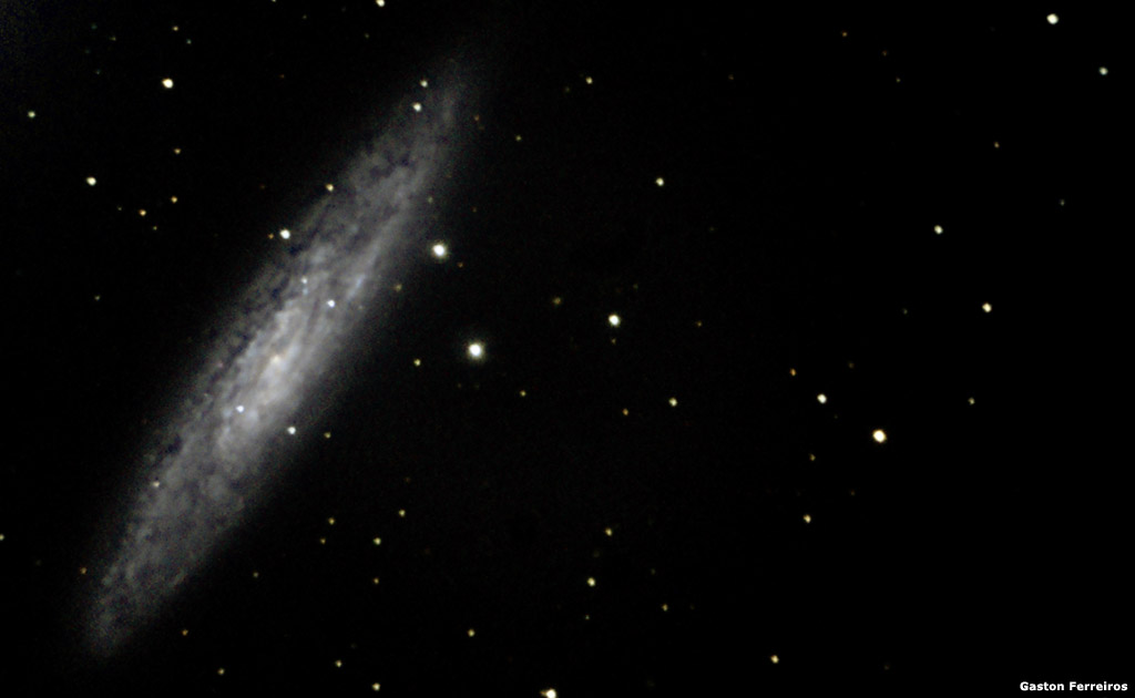 Imágenes tomadas por Gastón Ferreiros, utilizando un telescopio Meade LX200 GPS de 8" a F/10, con cámara CCD Orion StarShoot. Compuesta de 13 frames de 3 minutos, 4 darks.
