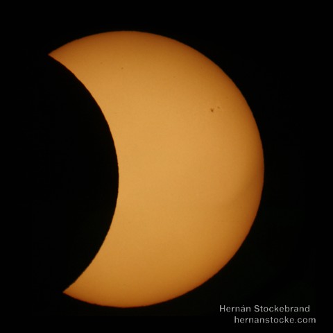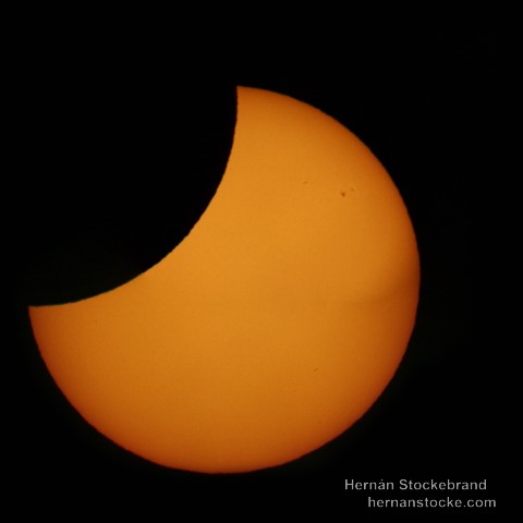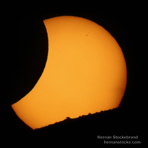 Imágenes del eclipse solar observado desde de Vicuña, Chile, utilizando un telescopio Celestron C8 200 mm F/10 + Filtro Solar, y cámara Canon XSi.