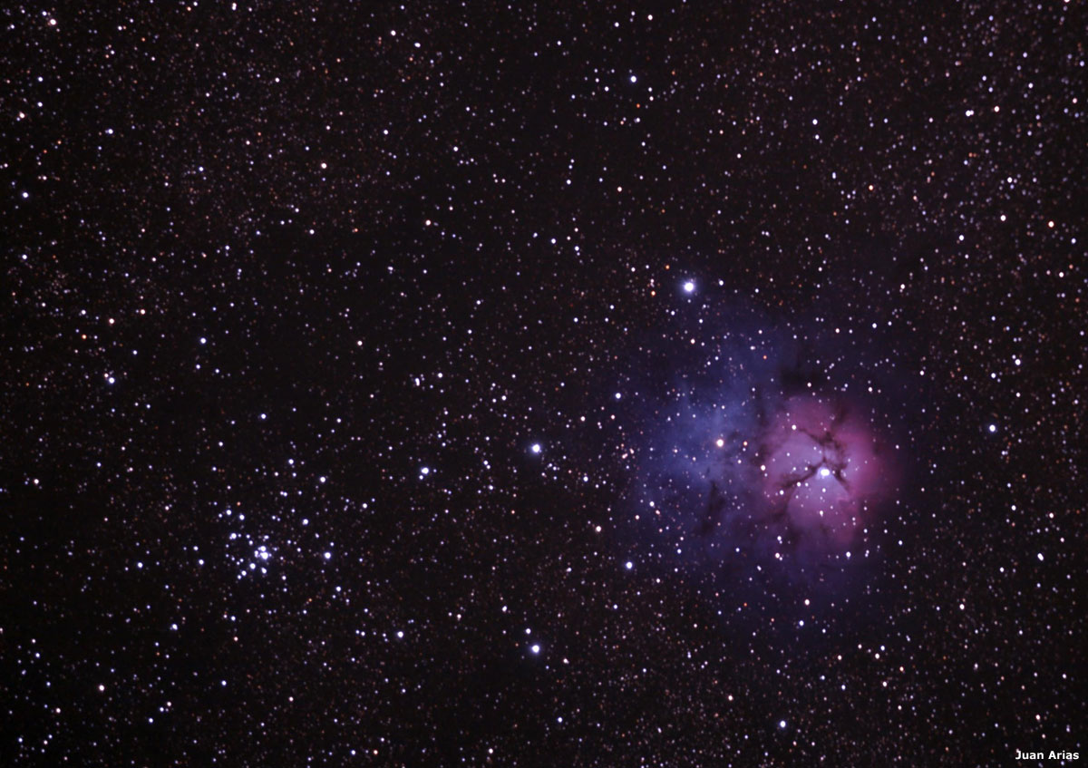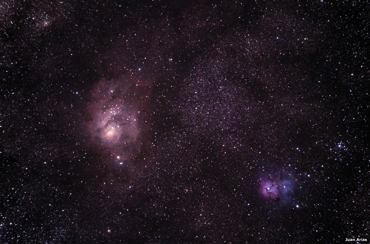 Imágenes de Juan Arias, todas tomadas con un telescopio Meade Newtoniano de 6" F/5, y refractor William Optics APO 66 F/5.9 para la de M 8 y M 20, sobre una montura Meade LXD-75 y cámara Canon 40D.