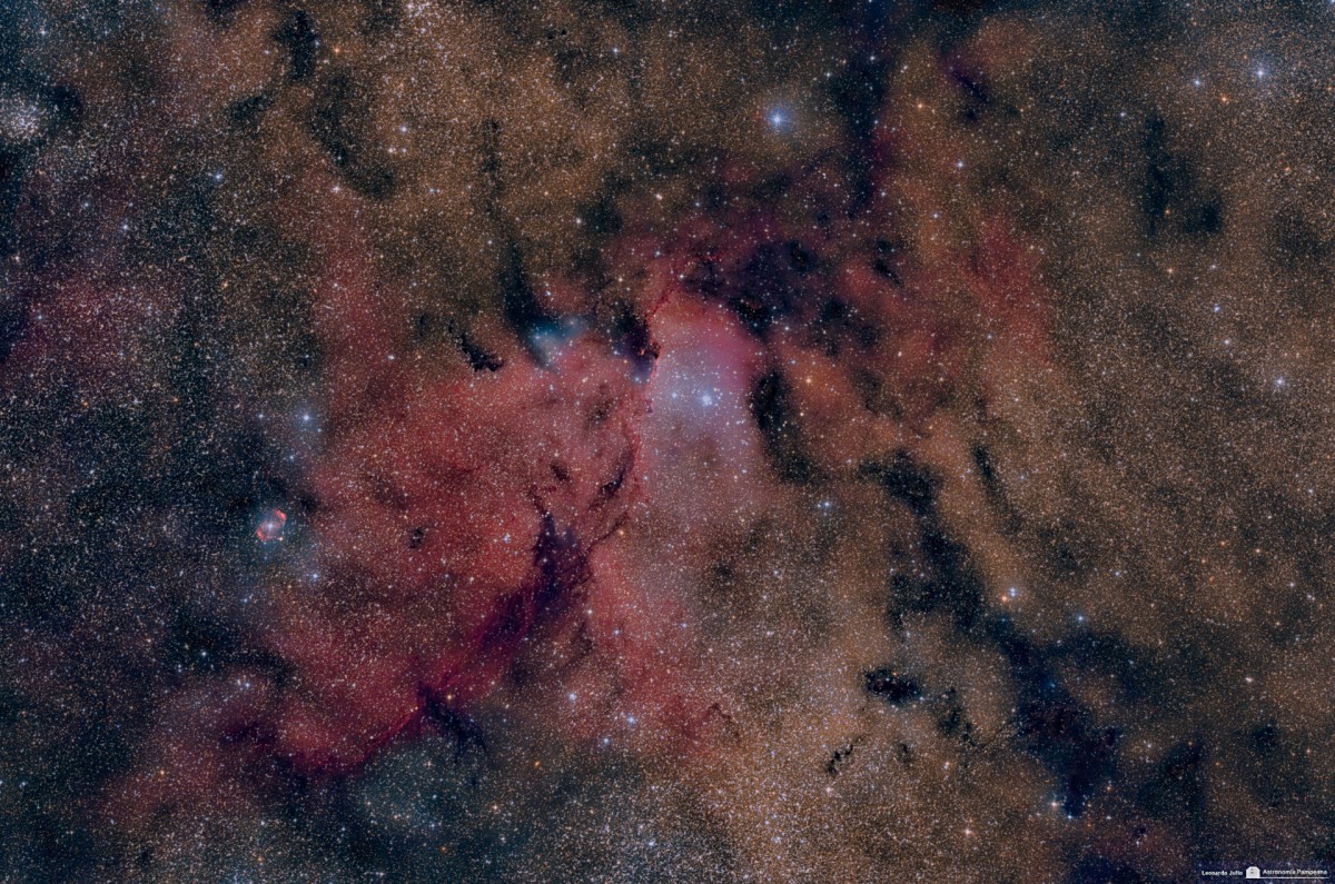 Imágenes de Leonardo Julio tomadas desde la localidad de Intendente Alvear, provincia de La Pampa, utilizando un telescopio Epsilon 180ED y cámara Canon 5D Mark II Hutech modificada. Más información e imágenes a resolución completa en Astronomía Pampeana.