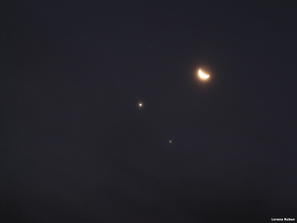 Imágenes del a conjunción entre la Luna, Venus y Júpiter, tomadas con cámara digital Panasonic DMC-FZ18 desde la localidad de Sunchales, provincia de Santa Fe.