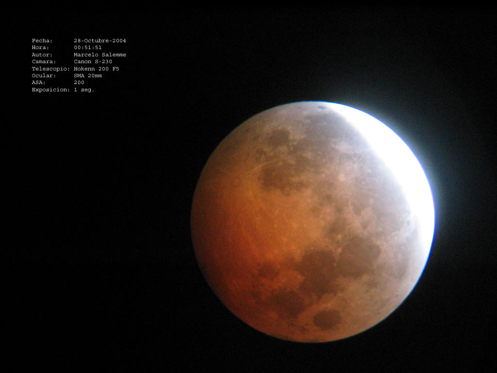 Fotografías del Eclipse Lunar Total del 27-28 de Octubre de 2004, tomadas por Marcelo Salemme con una cámara digital Canon S-230.