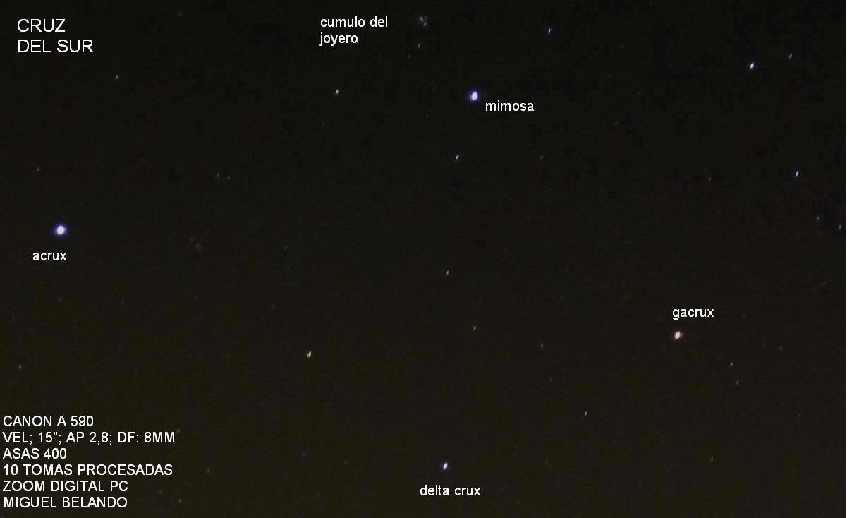 Gracias Oscar, a mi me gusta mucho esta constelacion tambien. Tiene lo suyo. Y me parecio interesante el detalle de GACRUX que salio bastante roja , a diferencia de las otras tres que se ven azules. Y a simple vista y con binoculares se aprecia ese detalle.Saludos