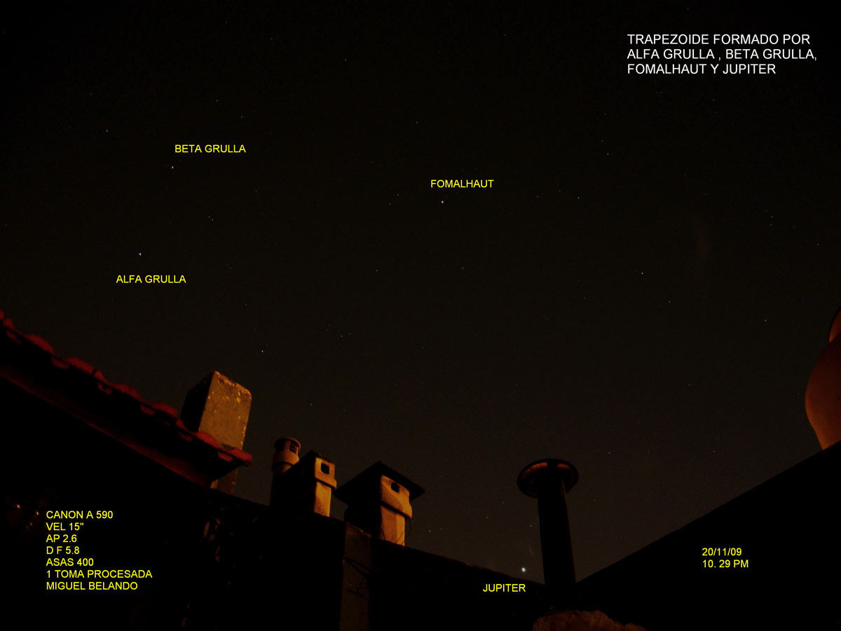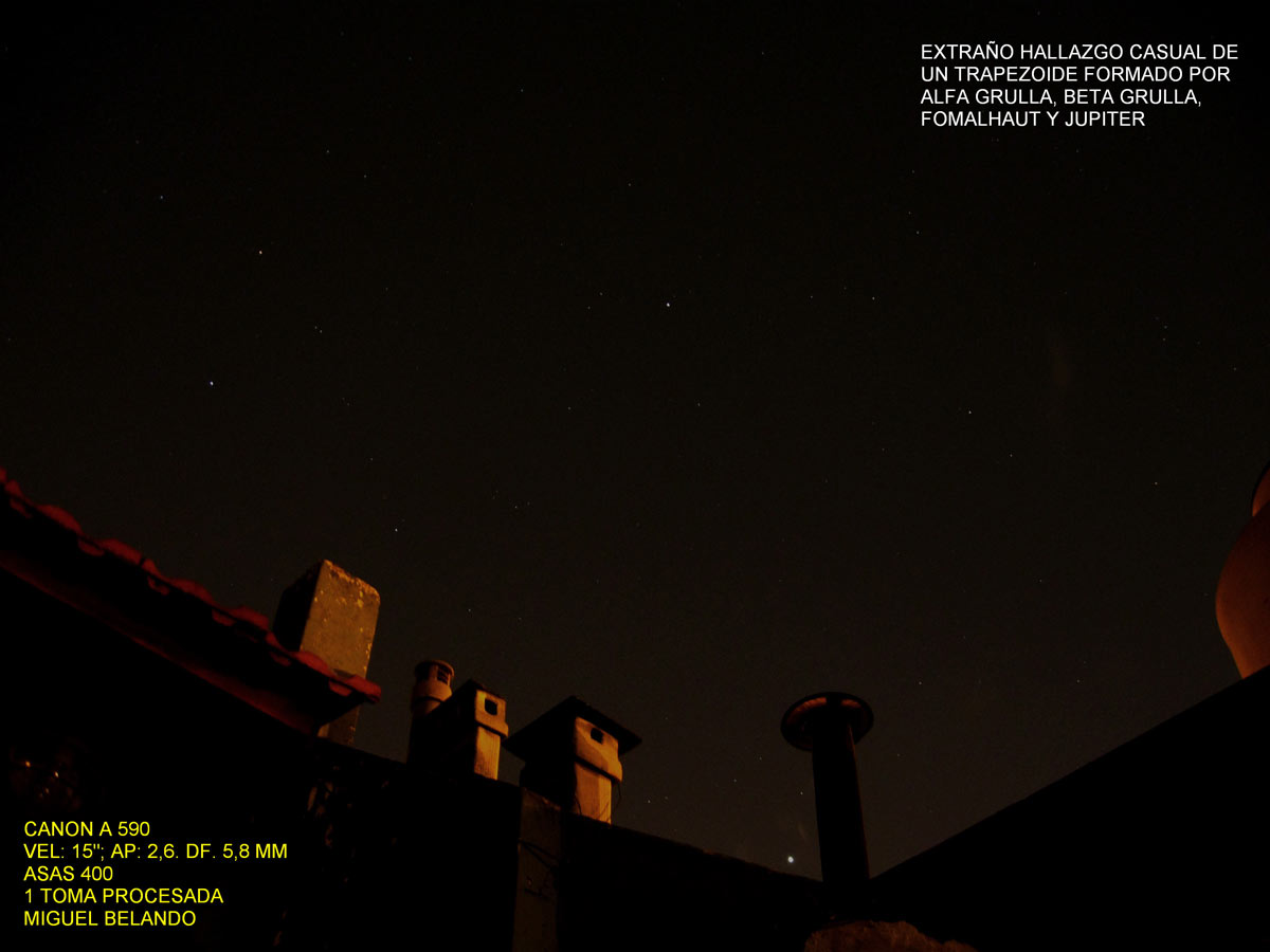 Buscando a Grulla y Fomalhaut , me encontre con Jupiter al lado de la chimenea............, me parecio interesante captar este momento unico................