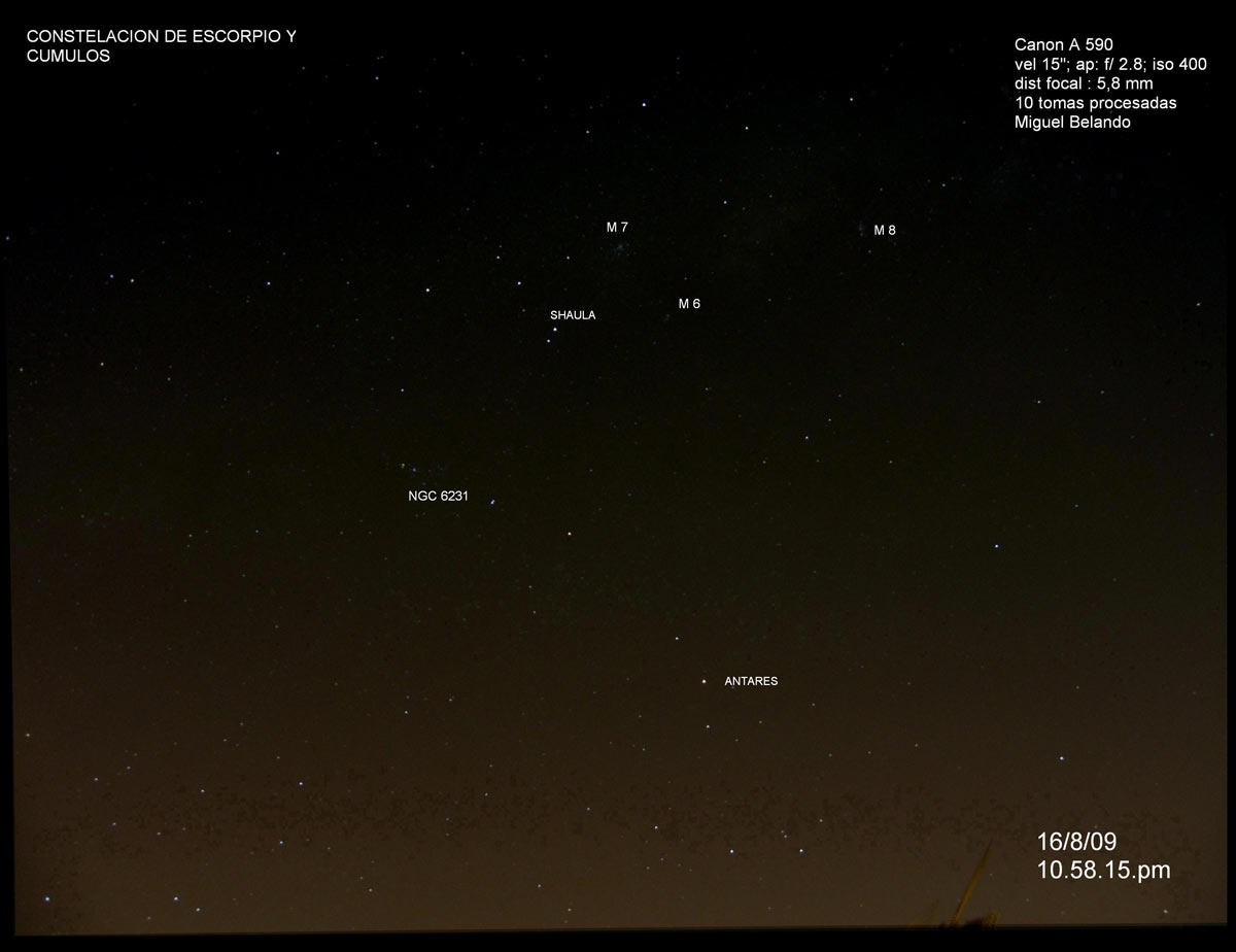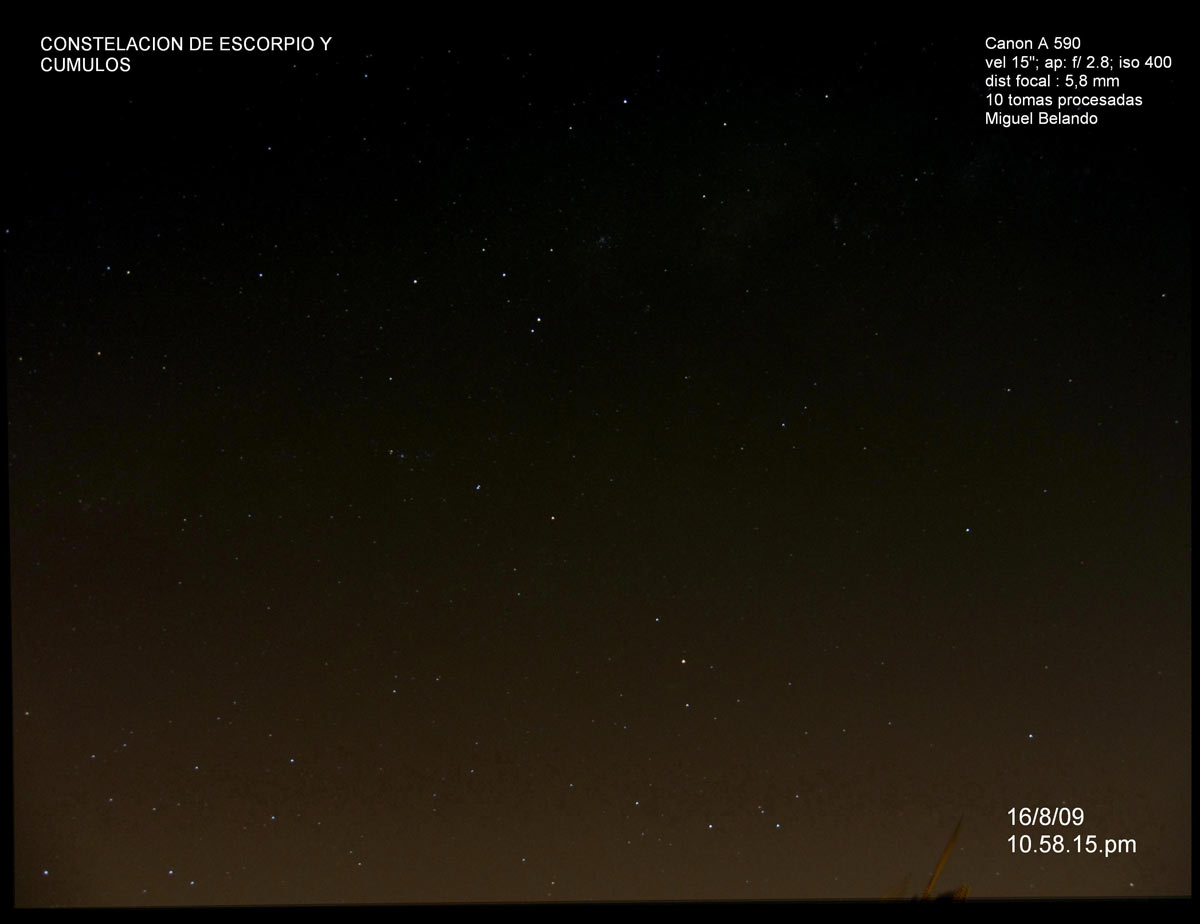 Imágenes de campo amplio con Canon A590 en ISOs 400, 800 y 1600. Scorpius, Sagittarius y Gruis.