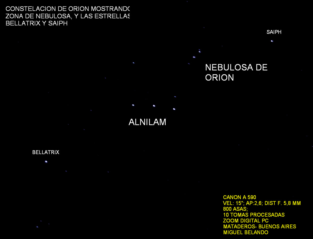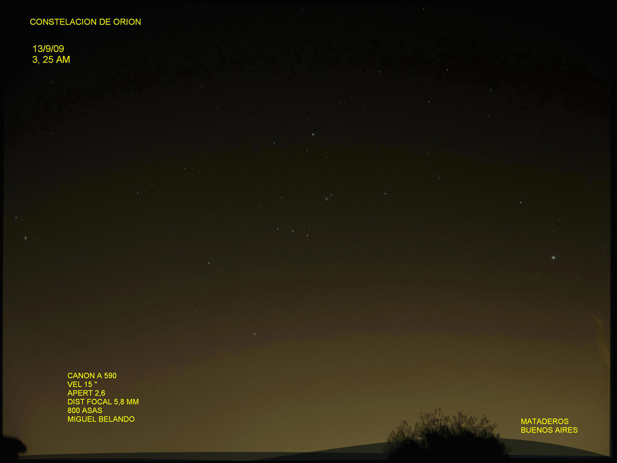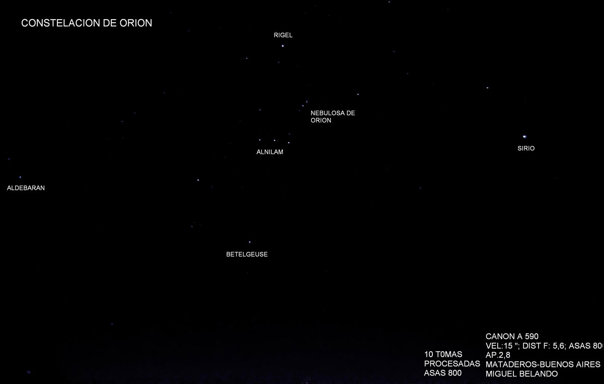Imágenes de campo amplio de la constelación de Orion y alrededores, tomadas con una cámara Canon A590.