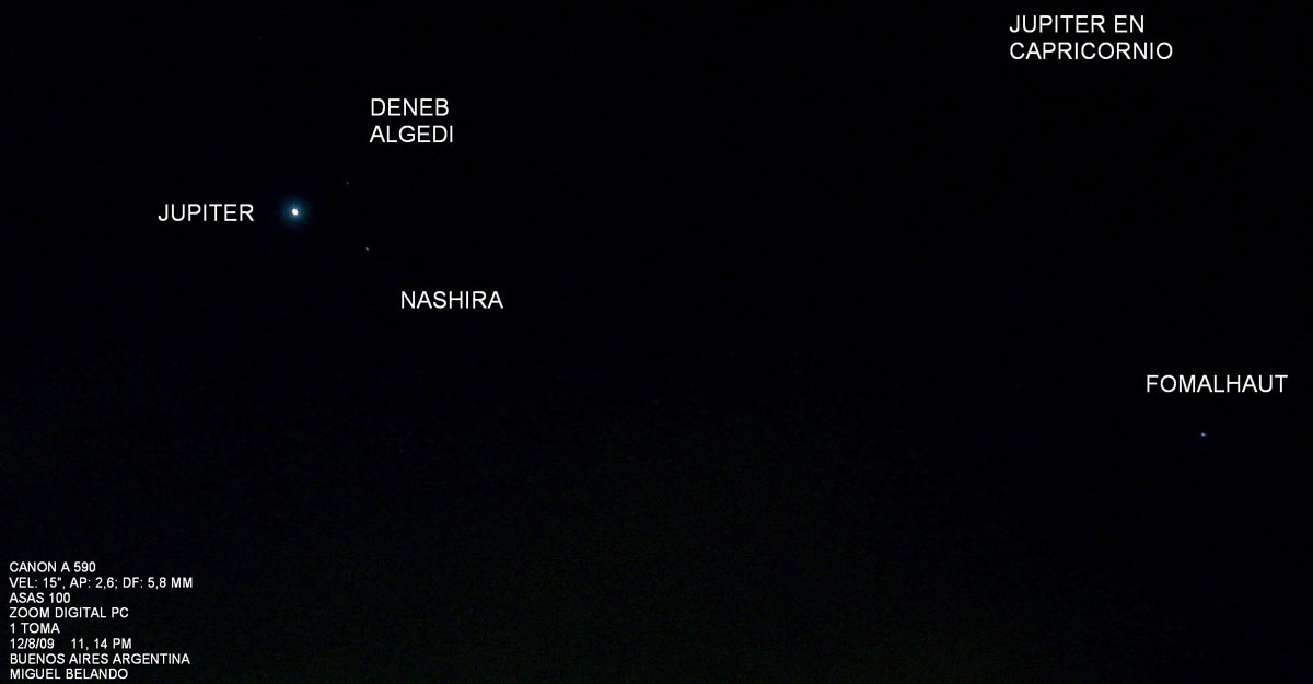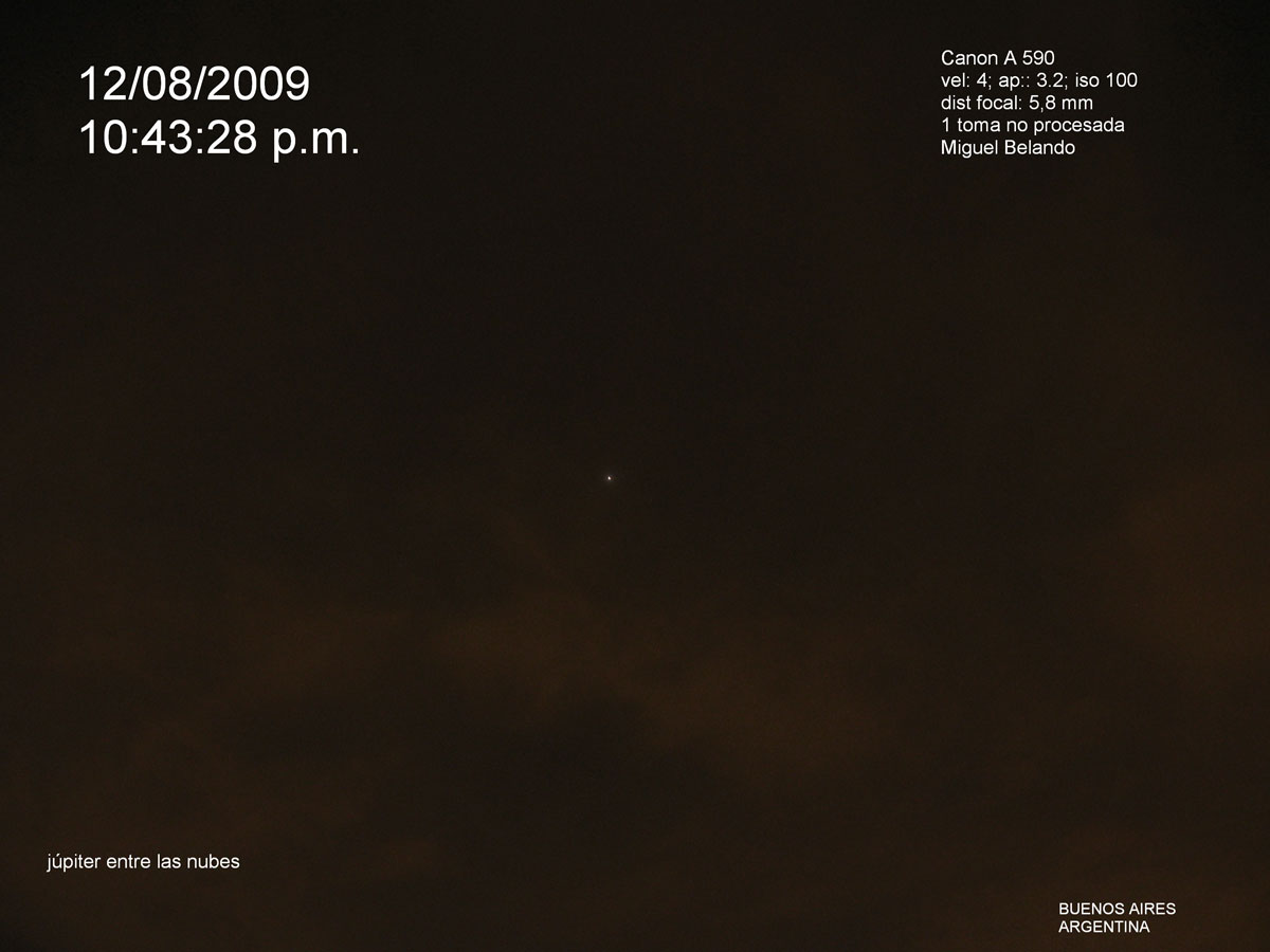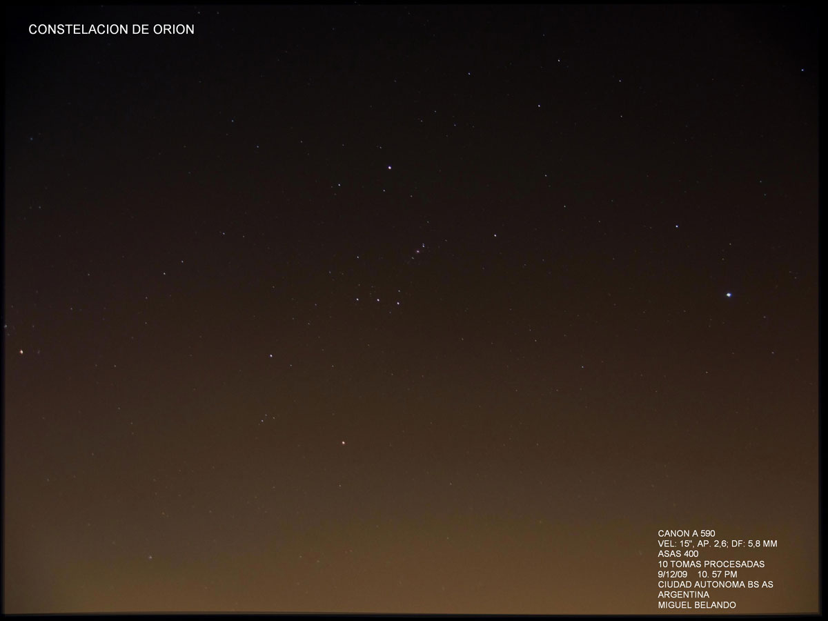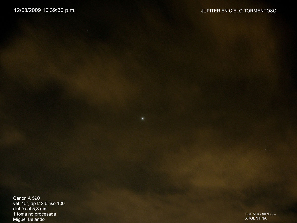 Imágenes de campo amplio de la constelación de Orion, y Júpiter, tomadas con una cámara Canon A590.