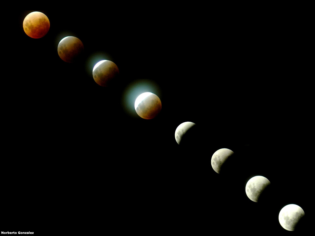 Imágenes del eclipse lunar total de 20-21 de Febrero de 2008 tomadas por Norberto Gonzales desde la ciudad de Belgrano, Buenos Aires, tulizando una cámara Panasonic Lumix FZ8 haciendo uso del zoom óptico 12x.
