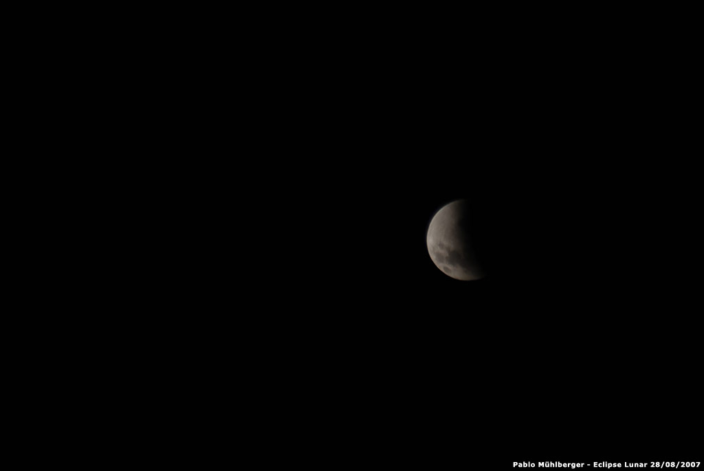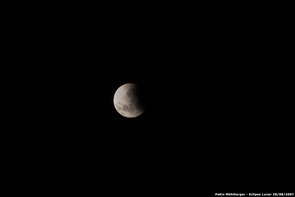 Fotografías de Pablo Mühlberger, tomadas desde Mercedes, provincia de Buenos Aires, con cámara Nikon D80, ylente Tokina 100-300 mm, del eclipse lunar del 28 de agosto de 2007.