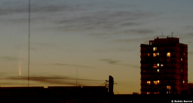 Fotografías del cometa C/2006 P1 McNaught tomadas por Rubén Barros desde Ciudadela, Buenos Aires, utilizando una cámara digital Sony DSC-W5