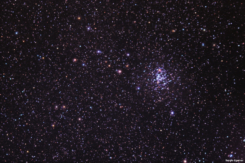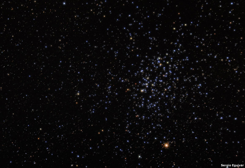 Otro nutrido cúmulo abierto con unas 150 estrellas de magnitudes 7 a 12 en una región que abarca casi un grado de extensión.