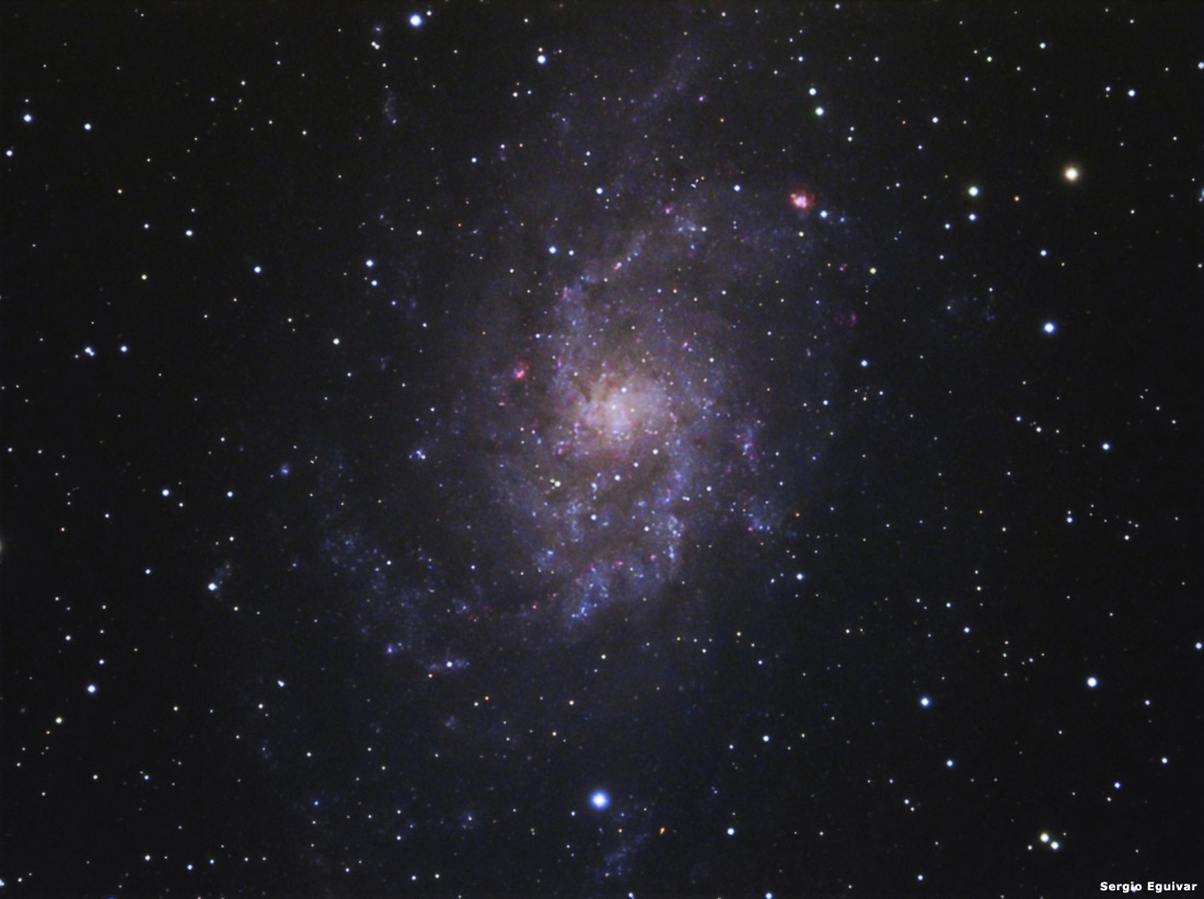 Imagen de la galaxia M 33, tomada con un telescopio refractor Orion ED80 sobre una montura Meade LDX75 y cámara CCD Starlight SXVF H9. Tomas LRGB (42,18,18,18) para un total de 96 minutos con sub exposiciones de 180 segundos. Procesada con ImagesPlus, CCDSharp y PS CS2.