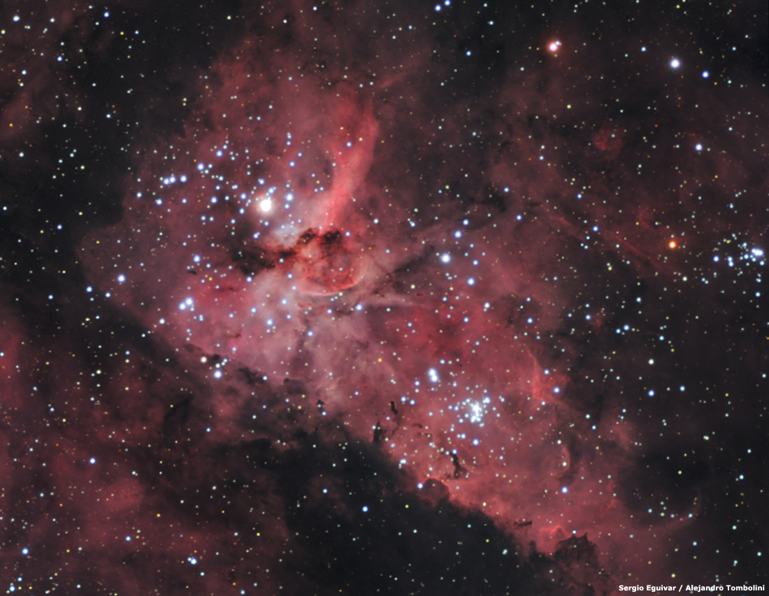 Imágenes tomadas desde AstroPilar (Ezequiel Bellocchio) en una colaboración entre Sergio Eguivar (cámara SXVF H9) y Alejandro Tombolini (telescopio William Optics 132 FLT - Longitud focal 925 mm - Apertura f/7). Información detallada e imágenes en mayor resolución disponibles en la Galería Próxima Sur.