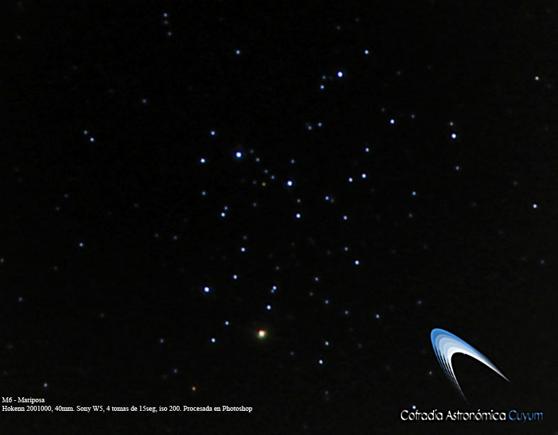 El cúmulo abierto M 6 tomado con una cámara Sony DSC-W de 5 mpx, en ISO-200 por los miembros de la Cofradía Astronómica Cuyum.