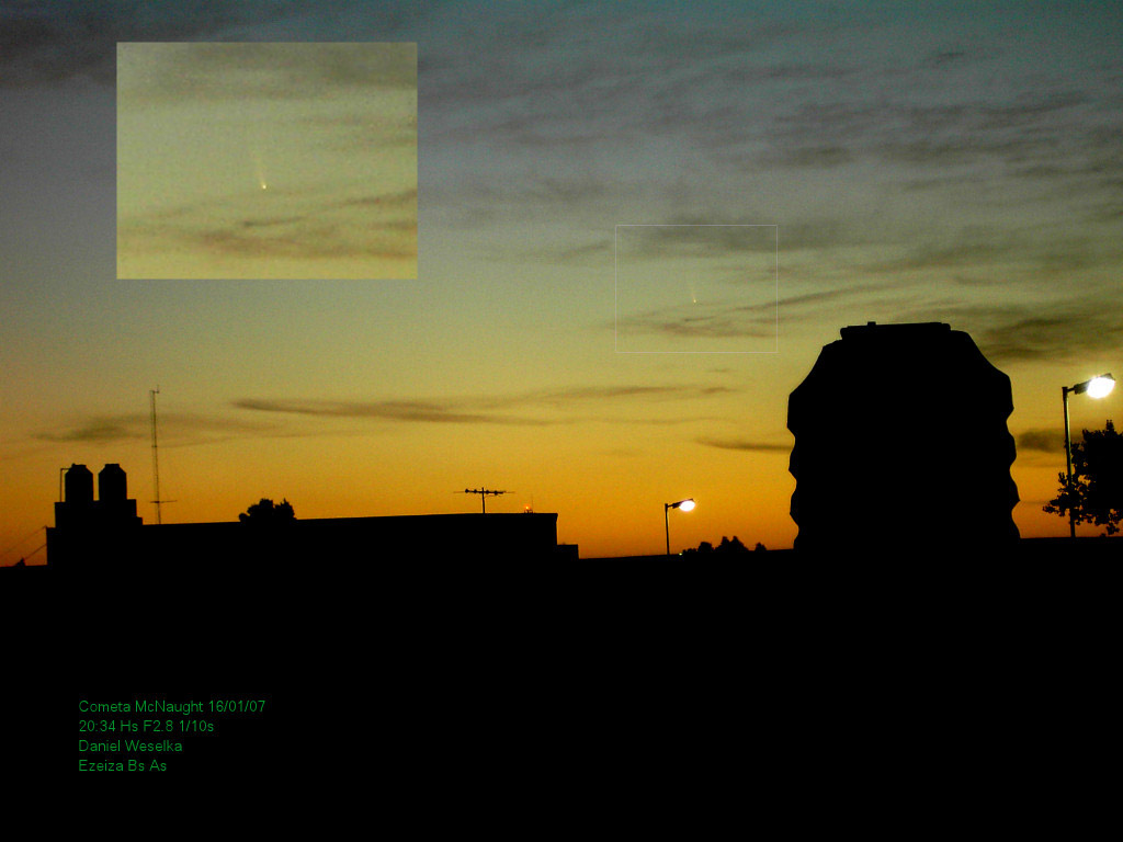 Fotografías del cometa C/2006 P1 McNaught tomadas por Daniel Weselka desde Ezeiza, Buenos Aires, Argentina, utilizando una cámara digital.