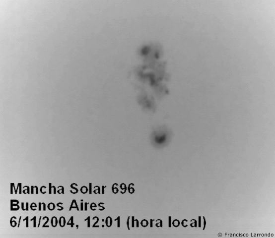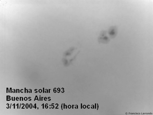 Fotografías de Francisco Larrondo. La de Júpiter fue lograda utilizando una cámara webcam Philips Vesta y un telescopio Celestron Shmidt-Cassegrain de 203mm f/10. Las fotografías solares se obtuvierón con una cámara Logitech en foco primario de un telescopio Meade 114/910. Fotografías procesadas con Registax.