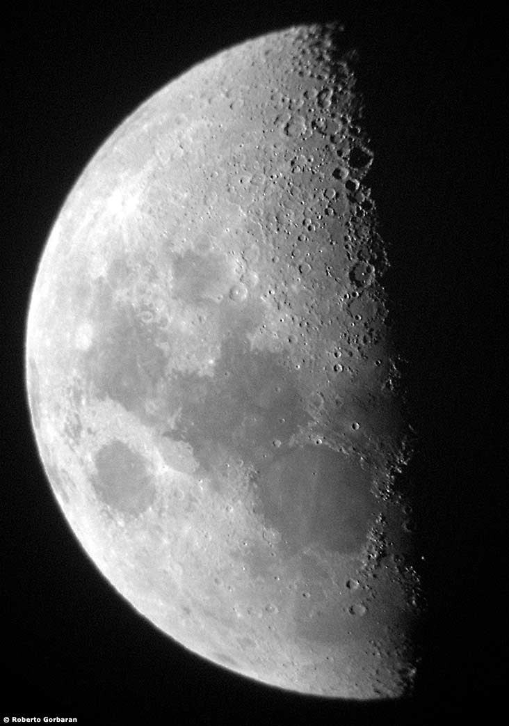 Roberto Gorbaran nos envia sus fotografías lunares tomadas con una cámara digital HP 635 de 2.1 megapixels utilizando un telescopio Tasco de 114 mm, f/8.