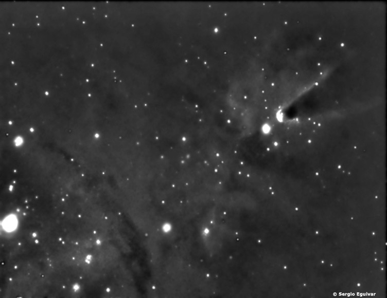 focal de 600 mm. Dentro de la nebulosa se encuentra el cúmulo