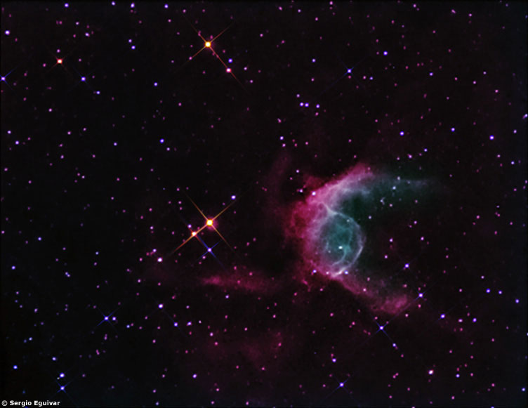 el casco en si) y visible en la foto brilla con una magnitud de 11,5. Esta estrella