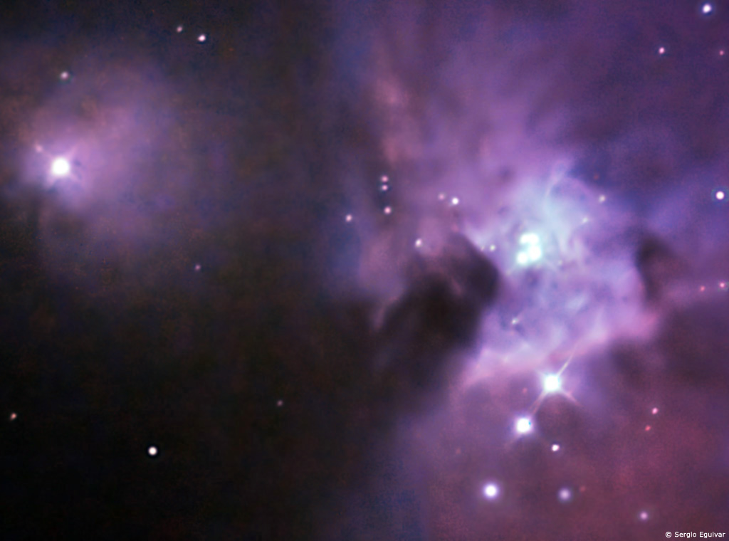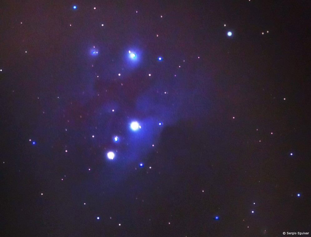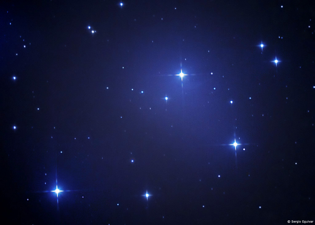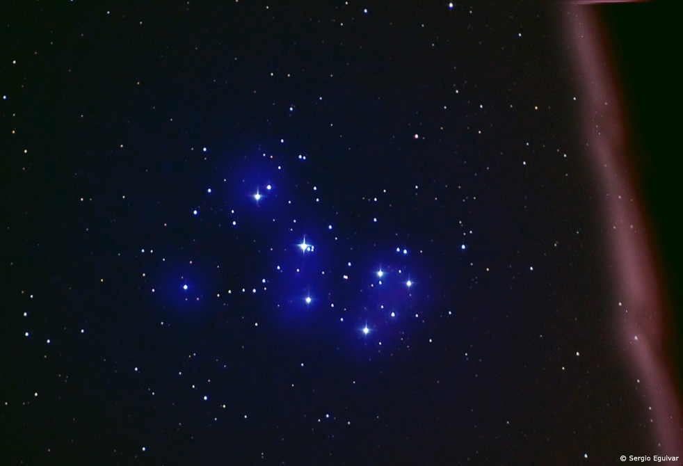 apreciar el detalle de las nubes azules de reflexión. En sentido horario tenemos Electra (abajo izquierda) Maia, 22